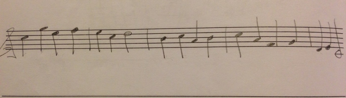 I’ve gotten pretty good at playing sheet music with open strings, so my instructor is now challenging me to work on 5th position. As part of my homework she wrote out this little diddy… “5th fret rock” (clever! :-)).